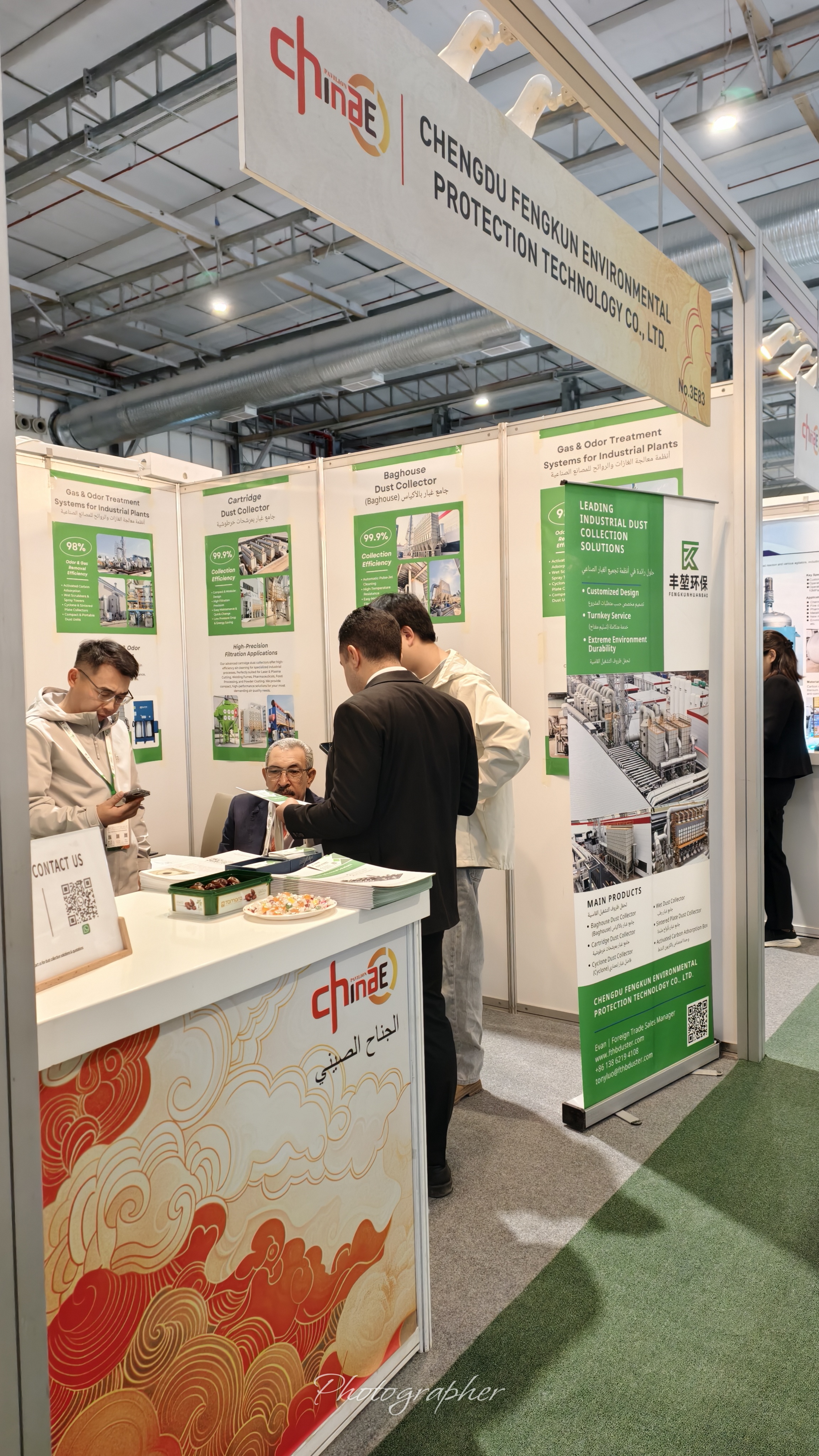 随着沙特“Vision 2030”战略持续推进,工业环保投入不断加大。展会期间,成都丰堃环保与来自沙特及周边国家的客户就环保设备选型、项目应用场景及本地化合作模式进行了深入沟通,为后续市场拓展与项目合作奠定了良好基础。