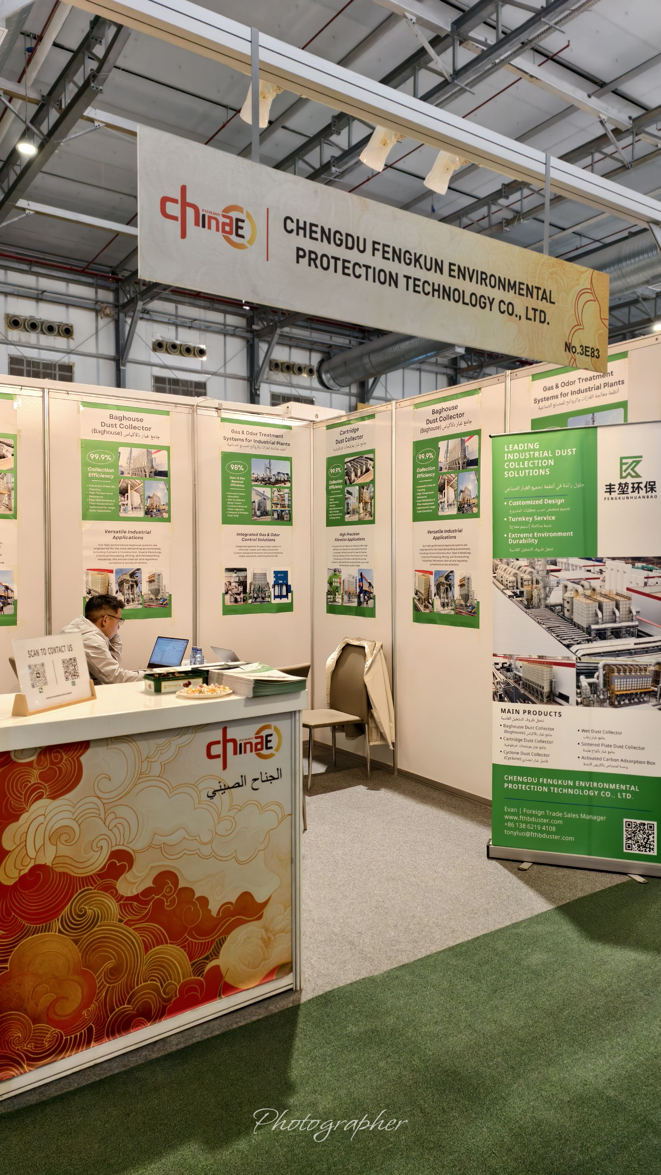173-1134-2375成都丰堃环保科技有限公司(Chengdu Fengkun Environmental Protection Technology Co., Ltd.)受邀参加 IFAT Saudi Arabia 国际环保技术展览会,并在展会现场(展位号:3E83)集中展示了公司在工业除尘与废气治理领域的核心产品与系统化解决方案,与来自沙特及中东地区的行业客户展开了深入交流。